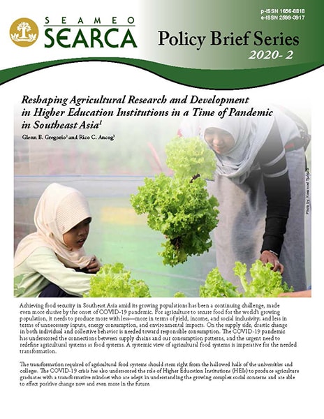 This is the analysis of Dr. Glenn B. Gregorio, Director, and Dr. Rico C. Ancog, Operations Consultant for Emerging Innovation for Growth, both of the Southeast Asian Regional Center for Graduate Study and Research in Agriculture (SEARCA), in a SEARCA policy brief titled "Reshaping Agricultural Research and Development in Higher Education Institutions in a Time of Pandemic in Southeast Asia."