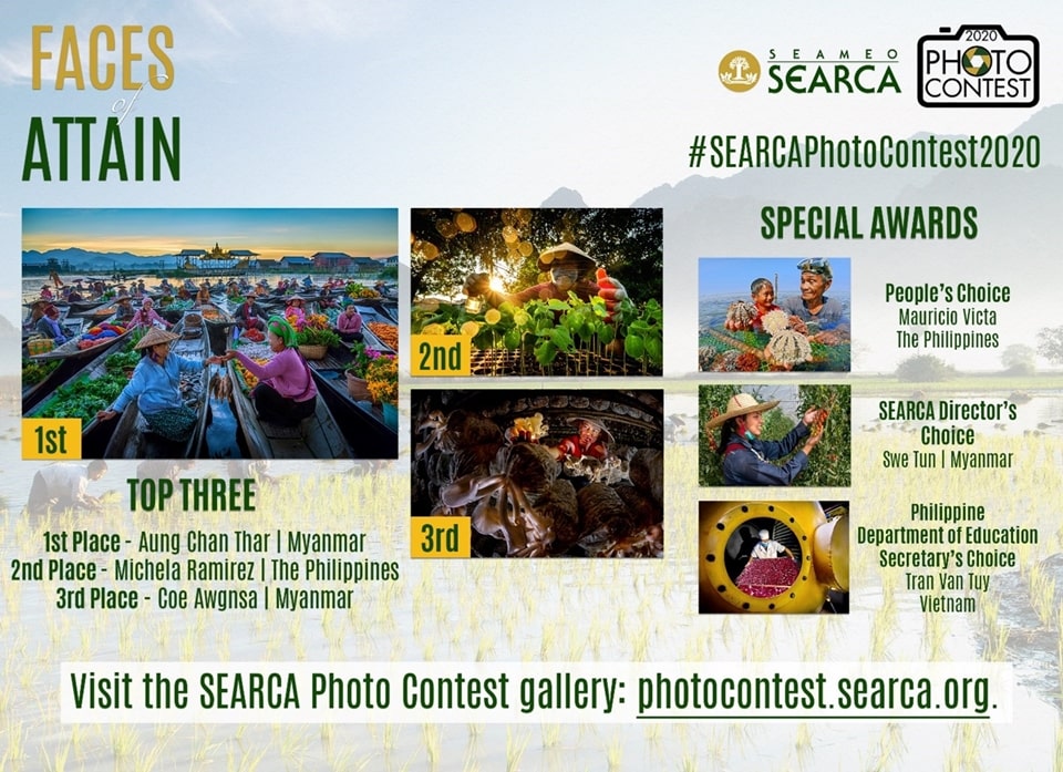The winning photos, the rest of the finalists, as well as previous years’ winners may be viewed at https://photocontest.searca.org. The SEARCA Photo Contest is an annual event started in 2006 and is launched every September primarily through the SEARCA Facebook Page.