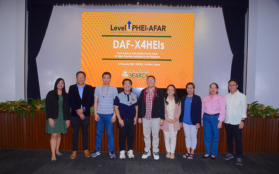 LOS BAÑOS, PHILIPPINES—The Southeast Asian Regional Center for Graduate Study and Research in Agriculture (SEARCA) conducted a training program on data analytics for faculty and staff of Philippine higher education institutions (HEIs) on 4–8 December 2023 at the SEARCA headquarters.