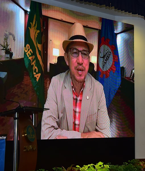 In his inspirational message, Dr. Glenn Gregorio, SEARCA director, emphasized that the pursuit of graduate studies is full of challenges in which patience, perseverance, intellect, creativity, and character are tested throughout the academic journey. He added that, "it is also a preparation for bigger challenges and opportunities ahead." Dr. Gregorio pointed out that learning should not stop even in times of pandemic; rather, "they must convert these challenges into opportunities to grow, to innovate, and be better and smarter individuals."