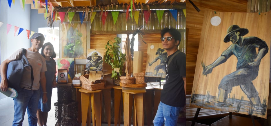 Merchants based in Los Baños were also invited to participate in the Innovation Fair. One is Viacrom Creative Communication Services that brought artworks using different media. "In our booth, we highlight waterlily sheets, one of the indigenous materials we use for our creative art. These sheets serve as our canvas, and we paint on them using acrylic and oil paints," said Mr. Daryl Descallar, one of the artists behind the artworks. Mr. Dalnod "Tamyaw" Laotingco, another artist of Viacrom, later joined them and catered to on-the-spot sketching with the consumers.