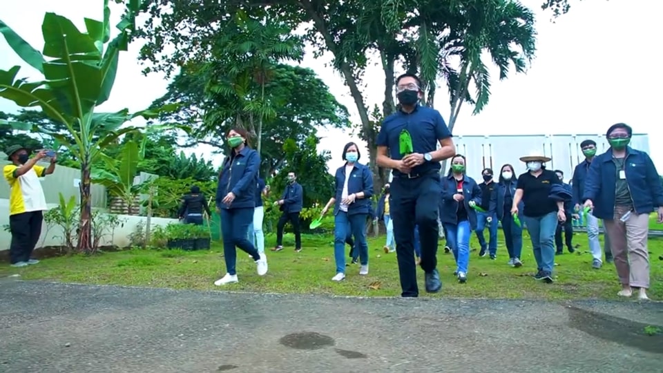 Representatives from Center units and departments led by Deputy Director Florendo (front) march to the SEARCA backyard for a vegetable planting activity.